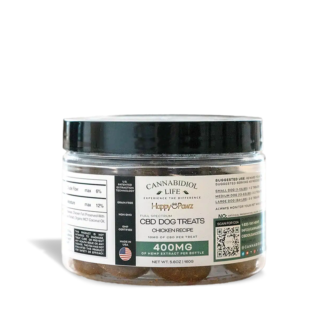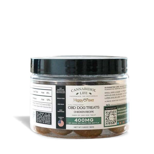Happy Pawz CBD Dog Treats are all-natural so you know your pup won’t receive any GMO’s. These treats are Chicken-flavored and are formulated for the happiness and well-being of all the furry canines in your family; experiencing a “barking punch” of wellness benefits in every treat.